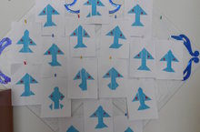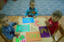 Аппликация белем бирү эшчәнлегендә уртанчылар төркеме балалары тәрбиячеләре Резеда Юнысовна белән ракеталар ябыштырдылар. Хәрби көчләр көненә багышланган бу рәсемнәр бик уңышлы килеп чыкты.