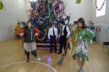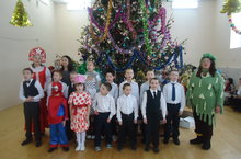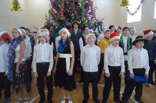 24 декабря состоялось новогоднее представление для 4 и 7 групп. Учащиеся все активно участвовали на празднике, были одеты в разнообразные костюмы. Особенно хорошо выглядел костюм петуха - символа Нового года. Был подобран интересный сценарий, где дети показали свое актерское мастерство, пели, танцевали, никто не остался в стороне. В конце Дед Мороз раздал всем подарки.