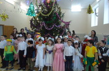 Возле елки собрались наши самые старшие воспитанники 6 и 8 групп. Кого только здесь нет: клоуны, снеговики, Баба Яга и различные сказочные герои. Возле них – главные герои праздника Дед Мороз и Снегурочка. Праздник прошел очень весело, красиво. С наступающим Новым годом!