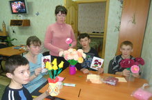 В рамках декады, посвященной 70 – летию Великой Победы воспитатели 5 группы провели акцию «Подарок ветерану». Своими руками изготовили букеты цветов, открытки.