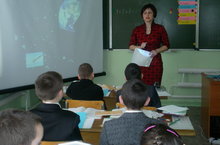 Урок прошёл в виде экскурсии по планетам. Педагог дала информацию о первом космонавте Ю.А.Гагарине, о Дне космонавтики – 12 апреля. На каждой остановке на планетах путешественники делала остановки и решали математические задания. За правильный ответ ученики получали звёздочки. В конце урока украсили небо своими звёздочками.