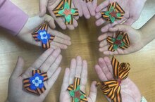 Воспитатель 5 группы Хисматова Р.Ф. провела мастер – класс по изготовлению нагрудного знака символа Победы в ВОВ для учащихся интерната.