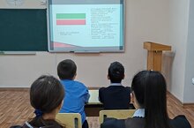 Яшел төс — тормыш, яшәеш, яңарыш, Ислам дине төсе. Ак төс — пакьлык билгесе, кызыл төс — яшәеш, сәламәтлек, энергия, көч-куәт төсе. Төсләрнең башка трактовкасы да бар: яшел төс татарларны, кызыл төс русларны, ак полоса фикерләр чисталыгын, пакълеген, ике халыкның бер-берсенә яхшы мөнәсәбәтен гәүдәләндерә.Сыйныфларда тәрбияви әңгәмәмләр үтте.