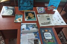 12 апрель көнне китапханә белән берлектә Космонавтика көненә багышланган күргәзмә оештырылды. Укучылар " Космик ярыш" исемле уенда көч сынаштылар.