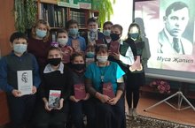 Совместно с работниками библиотеки учительница русского языка и литературы Н.Ш.Габдрахманова провела литературный вечер на тему: « Муса Джалиль – образец героизма и творчества».