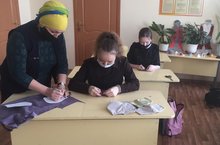 Укучыларыбыз технология дәресләрендә Сәләхиева М.Р. җитәкчелегендә маскалар тегәләр.