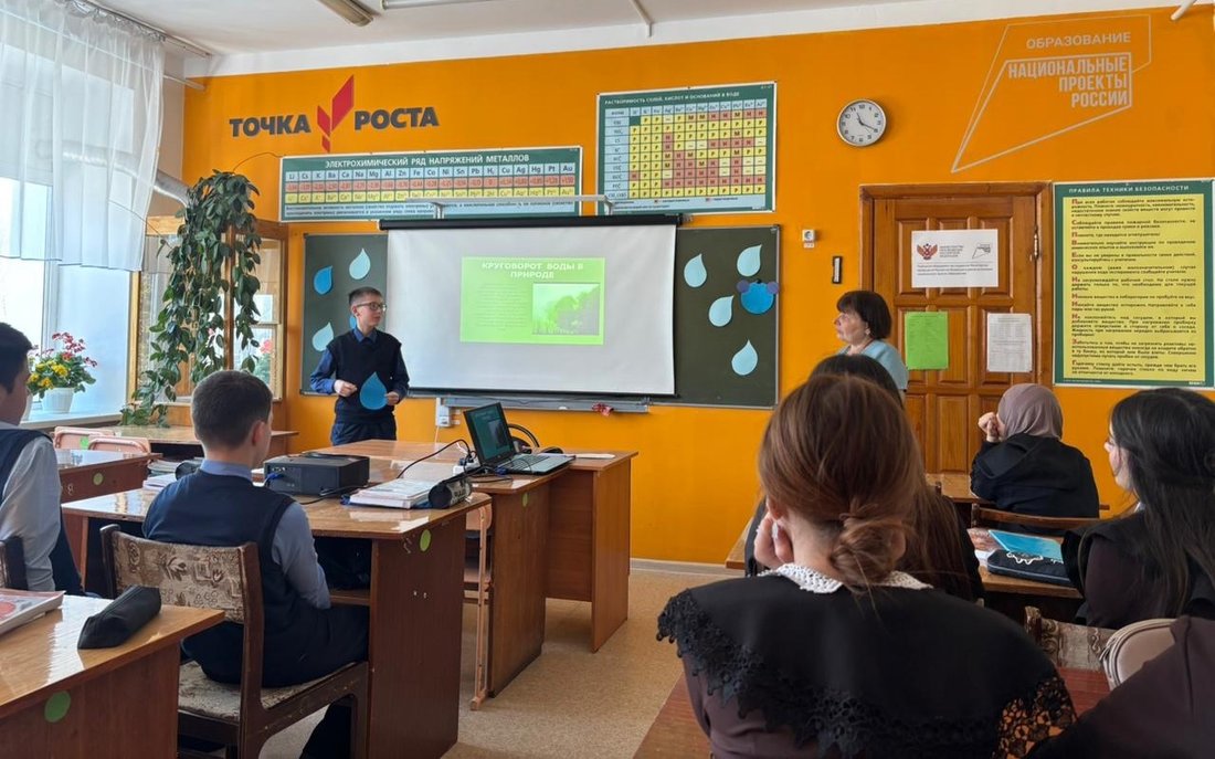 22 март Бөтендөнья су көне уңаеннан Шакирова К. Д. 8 класста класстан тыш чара үткәрде. Укучылар суның кеше тормышында һәм табигатьтәге әһәмиятен ачыкладылар, аның 3 агрегат хәленә бәйле кызыклы сорауларга җавап бирделәр. Суның чисталыгы иң зур экологик проблема һәм һәр кешенең сәламәтлеге аңа бәйле булуына төшенделәр.