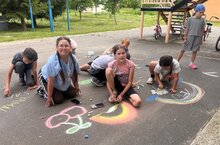 Сегодня в лагере прошел красочный конкурс рисунков на асфальте "Мое лето". Ребята с воодушевлением и радостью рисовали рисунки. Все рисунки отличались своеобразной задумкой, темой, любовью к лету. Асфальт был, как огромный холст, на котором воплотились фантазии , мысли, летние краски. Ребята очень старались, помогали друг другу, увлеченно создавая мелом рисунки, и серый холст превратился в разноцветное полотно фантазий и веселья.