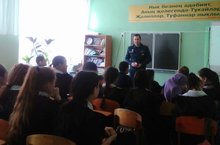 Бүген мәктәбебездә янгын күзәтчелеге инспекторы Сотов А.Ю. һәм ОСВОД вәкиле Лесенко А.П. укучылар белән очраштылар. Алар укучыларны, бик үтемле итеп, янгын куркынычсызлыгы һәм сулыкларда , су буйларында үз-үзеңне тоту кагыйдәләре белән таныштырдылар. Укучыларның бу өлкәләрдә булган белемнәрен дә тикшереп карадылар.