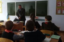 Шушы көннәрдә укучыларыбыз белән очрашуга мәктәп полиция хезмәткәре Нигматуллин Мансур Камбил улы килде. Ул,хокук бозуларны булдырмау максатыннан, укучылар белән юл йөрү кагыйдәләре, чит әйберләргә тимәү, кич чыгу мәсьәләсе буенча әңгәмә алып барды.