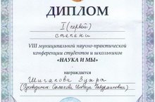 X класс укучылары Шигапова З. һәм Шигапов Р. (җитәкчеләре - математика укытучысы Сәләхова И.Г.) I һәм III дәрәҗәдәге дипломнарга ия булдылар.