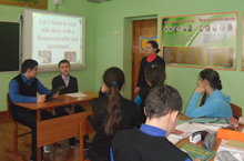 Сегодня учащиеся 8 класса соревновались между собой. Они показали свои знания по СМИ. Участники команд разбирали известные им телепередачи по их видам, назвали "+" и "-" телевидения. Сюрпризным моментом этого мероприятия стало ток-шоу с известным путешественником и спортсменом. Ученики вошли в роль так, что ученики-зрители были очень заинтересованы и задавали интересующие их вопросы.