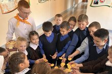 В День самоуправления, выбрав роль советника директора по воспитанию, ученик 10 класса Хайретдинов А.Г. организовал акцию «День Улыбки». Дети играли в игру «Передай улыбку», старались дарить друг другу хорошее настроение добрыми словами. Изготовили улыбчивых смайликов, подарили их детям, доставили радость и искренние улыбки.