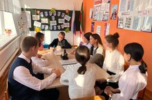 Советник директора по воспитанию совместно с юнармейцами организовала просмотр цикла видеороликов «ДНК России» на тему становления российской государственности с последующим обсуждением: