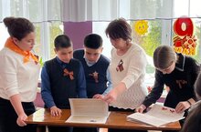 В преддверии праздника Дня Победы наши учителя, родители и учащиеся присоединились к патриотической акции «Георгиевская ленточка». Главный слоган акции: «Я помню! Я горжусь!». Каждая чёрно-оранжевая полоска на ленте – тысячи жизней, отданных ради будущего нашей страны, в которой мы сегодня живём. Этот символ Победы носят у сердца в знак того, что подвиг советских солдат навсегда остался в сердцах потомков.