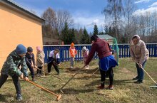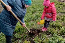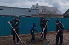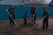 Балалар гаиләләре белән бергәләп йорт территориясенә агачлар һәм куаклар утырталар. "Сад памяти" акциясендә катнашабыз. 15.04.2025