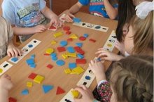 Математический КВН (для детей старшего дошкольного возраста).Цель игры: проверка умений детей самостоятельно выполнять задания в условиях соревнования. Программные задачи: закрепить порядковый счёт; установление связей и отношений между числами натурального ряда; состав числа из 2-х меньших; счёт единиц по мерке, равной нескольким частям, которые физически не объединяются; зависимость числа от величины мерки при неизменной величине объекта измерения. Правила игры. Группу детей делят на две равные команды, им предлагают одни те же задания, правильность выполнения которых каждым ребёнком и командой в целом оценивает жюри. Выполнять задания нужно самостоятельно и быстро по сигналу ведущего. Каждый участник КВН за правильный ответ получает фишку (что даёт возможность оценить успехи каждого участника игры), а команда за большее количество правильных ответов получает флажок. Материал и оборудование: карточки с цифрами, картинки, ленты, крупа, мерки. 13.10.2016