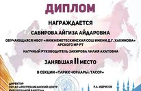 27 мая 2020 года на базе МБУДО ДДЮТиЭ "Простор" города Казани состоялась Межрегиональная научно-практическая конференция «Ватаным Татарстан» («Моя Родина Татарстан»), посвященная 100-летию ТАССР. На этой конференции приняла участие ученица 6 класса нашей школы Сабирова Айгиза и заняла 2 место. Поздравляем Айгизу и её руководителя Закирову Л.А.!