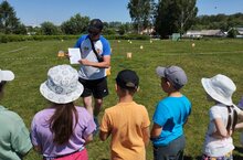 Новый день в лагере как обычно начался с утренней зарядки. Ни один день в лагере не проходит без спортивных игр. Гостем сегодняшнего для стали учитель физической культуры Залялиев И.И. и методист Арского Дворца школьников Сафин Ленар.