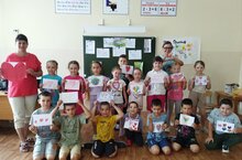 Шестнадцатый день пришкольного лагеря «Кояшкай» проходил под девизом «Помним и чтим». После завтрака воспитатели провели викторину «Что я знаю о войне?», которая сопровождалась показом фотографий военных лет. Недавно отмечали День Победы, поэтому в памяти детей ещё осталось очень многое из того, что рассказывали им учителя. Они наперебой рассказывали о событиях военных лет, о жестокости фашистов. Воспитатели показали видео «Великая отечественная война», рассказали о немецких концлагерях. Потом всем отрядом пошли в школьный музей. Там ребята с интересом рассматривали экспонаты – каски, котелки, гильзы, фляжки... Также приняли участие в акции "Вахта памяти", в рамках которой посетили могилу неизвесного солдата. После обеда приняли участие в конкурсе рисунков «Мы помним!» и дружно играли в разные подвижные игры на свежем воздухе.