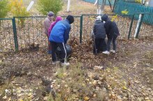 Бүген мәктәп территориясен җыештыру буенча өмә оештырылды.