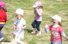 Әй, күңелле дә соң САБАНТУЙ!Капчык киеп йөгерү ярышында малайлар белән беррәттән кызларыбыз да катнашты. Алардан калышмыйча җиңү яулаган кызлар да булды. Күзне бәйләп чүлмәк вату ярышы да озак көттермәде. Балалар тиз арада бер-берсенең артына тезелеп тә бастылар. Чүлмәкне җиткер генә. Аннан чираттагы ярышыбыз кашыкка йомырка салып йөгерү булды. Балалар бер дә аптырап тормадылар, кашыктан йомыркалары төшеп калса да, тәрбиячеләре янына беренче йөгереп килергә тырыштылар. Ә намуслырагы, төшкән йомыркасын алам дип, артка да калды. Сабантуйда барлык балалар да бик теләп, кызыксынып катнашты. Өлкән төркем балаларыннан калышмыйча, безнең кечкенә төркем балалары да бик мавыгып уйнадылар. Ярышлар туктап торган арада балалар шигырьләр сөйләделәр, җырладылар, биеделәр. Күз бәйләп, уенчыклар кистеләр. Һәрбер ярыш нәтиҗәләре буенча бүләкләр бирелеп барылды. Балаларга бүләкләрне балалар бакчасы коллективы, авылдашлар, әти-әниләр әзерләде. Бүләкләр әзерләп, кечкенә сабыйларыбызның күңелләрен күтәргән өчен аларга бик зур рәхмәт әйтәсе, эшләрендә уңышлар, гаиләләрендә тынычлык телисе килә. Сабантуйда бер генә бала да бүләксез калмады. Бәйрәм бик күңелле үтте. Балалар да, өлкәннәр дә рәхәтләнеп күңел ачты.