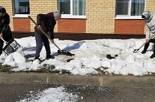 Бүген балалар бакчасы хезмәткәрләре өмәгә чыкты. Бина кырыйларын, уен мәйданчыкларын кардан чистарту эшләре дәвам итә.