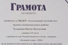 Арча районы балалар бакчалары арасында узган Республика смотр-кокурсының район туры "Зеленый огонек-2024" конкурсында катнашып җиңү яулаган Хусаенова Римма Назгать кызын- хезмәттәшебезне котлыйбыз, алда да зур уңышлар насыйп булсын дигән теләктә калабыз!!!Афәрин