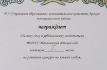 Арча районы балалар бакчалары арасында узган "Иң яхшы лэпбук" конкурсында катнашып 1 урын яулаган Шагиева Алсу Курбангали кызын-хезмәттәшебезне котлыйбыз, алда да зур уңышлар насыйп булсын дигән теләктә калабыз!!!Афәрин