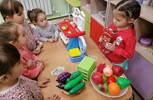 "Кибет".Сюжетлы-рольле уеннарны без бик яратып уйныйбыз./"Магазин".Мы очень любим сюжетно-ролевые игры.