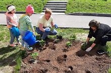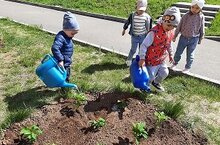 Балалар белән бергәләп бакчабыз мәйданчыгына чәчәкләр утырта башладык.