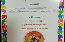 Сегодня на базе МБДОУ "Арский детский сад N 11 общеразвивающего вида" прошел районный конкурс "Лучший мастер-класс педагога детского сада" среди воспитателей дошкольных образовательных учреждений Арского муниципального района. Из нашего сада участвовала Галиуллина Алина Фидаэлевна и заняла третье место. Поздравляем!