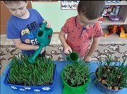 Зурлар төркемендә балалар тәрәзә төбендәге үсемлекләргә су сибеп, төпләрен йомшартып, аларның үскәннәрен күзәтеп торалар. Балаларга бик ошый. Алар бу эшне яратып башкаралар. Тәрәзә төбендә искиткеч матурлык.