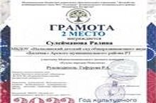 Арча районы Мәгариф идарәсе тарафыннан оештырылган балалар бакчаларында тәрбияләнүче балалар өчен уздырылган "Бишек җыры" конкурсында Ш.Ризван икенче урынга лаек булды.Аны уңышлары белән котлыйбыз.