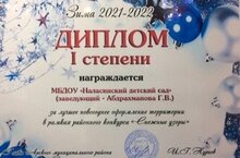 Район күләмендә оештырылган"Карлы бизәкләр" бәйгесендә безнең балалар бакчасы Яңа елга "Иң яхшы бизәлгән территория" номинациясендә I дәрәҗә диплом белән бүләкләнде.Хезмәтебезне бәяләгән җитәкчеләребезгә, ярдәм күрсәткән өчен әти-әниләргә һәм бакча коллективына олы рәхмәтебезне белдерәбез.