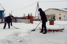 Погода каждый день преподносит свои сюрпризы, но наши "тимуровцы " начеку и всегда готовы помочь нашим подопечным бабушкам и дедушкам. Старшеклассники "курируют" территорию вокруг памятника Воинам Великой Отечественной войны.