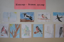 Бүген мәктәптә башлангыч класс укучыларының "Кошлар - безнең дуслар" дип исемләнгән рәсемнәр күргәзмәсе узды.
