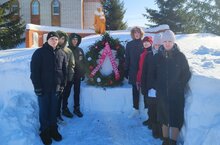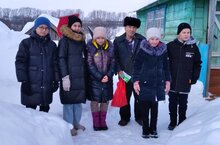 5нче класс укучылары өлкән яшьтәге авылдашыбызны Ватанны саклаучылар көне белән котладылар.