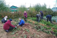 Көз-уңыш җыю вакыты. Сентябрь ае безне җылы кояшлы көн белән шатландырды һәм без, перчаткалар, көрәкләр белән коралланып, мәктәп яны участогына чыктык, уңыш җыябыз.