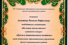 Район күләмендә уздырылган "Милли почмак" конкурсында " Иң яхшы иҗади почмак" номинациясендә грамотага ия булдык 15.11.2019