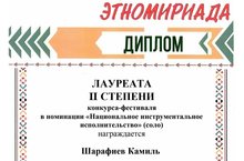 Поздравляем дуэт кураистов Гилязиев Ранис, Габдрахманов Инсаф детской школы искусств с дипломом лауреата I степени Международного конкурса-фестиваля традиционной культуры и народного художественного творчества "Этномириада" (заочно) г. Казань. Преподаватель и концертмейстер Харисов Р.Р.