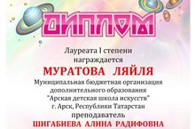 В номинации "Эстрадный вокал" Муратова Лейля - лауреат I степени (преподаватель Шигабиева А.Р.);