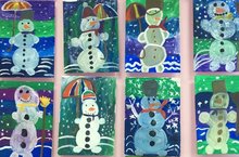 Выставка работ на тему: "Снеговики" учащихся 1 класса отделения изобразительное искусство+английский язык, преподаватели Каримова А.А., Галимжанова А.Р., Котдусова Г.Ф.