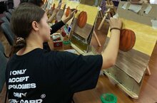 Обучающиеся отделения «изобразительное искусство+английский язык» Детской школы искусств на уроках по декоративно-прикладному искусству приготовили подарки для своих бабушек ко Дню добра и уважения. Ребята расписали разделочные доски в стиле "Хохлома " и "Городецкая роспись." Доски получились яркими и оригинальными.