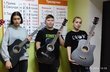 Мы продолжаем работу в рамках проекта "Пушкинская карта". Преподаватель Алеева М.Т. обучает участников мастер-класса извлекать звук с шестиструнной гитары приёмом "тирандо".