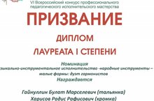 Поздравляем преподавателей народного отделения: Гайнуллина Б.М. (тальянка) Харисова Р.Р. (хромка) с победой в VI Всероссийском конкурсе профессионального исполнительского мастерства «ПРИЗВАНИЕ», г. Казань.