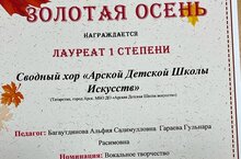 Поздравляем сводный хор Детской школы искусств с дипломом лауреата I степени Всероссийского фестиваля-конкурса творчества "Золотая осень" г. Санкт-Петербург. Руководители Гараева Г.Р., Багаутдинова А.С. Молодцы!