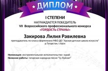 Поздравляем преподавателя Закирову Лилию Равиловну с дипломом I степени Всероссийского профессионального конкурса "Гордость страны". Желаем дальнейших творческих высот!