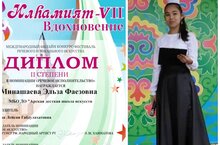 Арча балалар сәнгать мәктәбенең театр бүлеге укучысы Минашаева Эльза (җит. Ахунова Л.Г.) Казан шәһәрендә узган "ИлҺамият" Халыкара сөйләм һәм җыр сәнгате бәйге-фестивалендә катнашып II дәрәҗә диплом белән бүләкләнде. Котлыйбыз! -