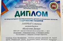 Котдусова Мәрьям -I дәрәҗә лауреат, Фатыйхова Камилә - III дәрәҗә лауреат. Җитәкчеләре Фатыхова А.М. -